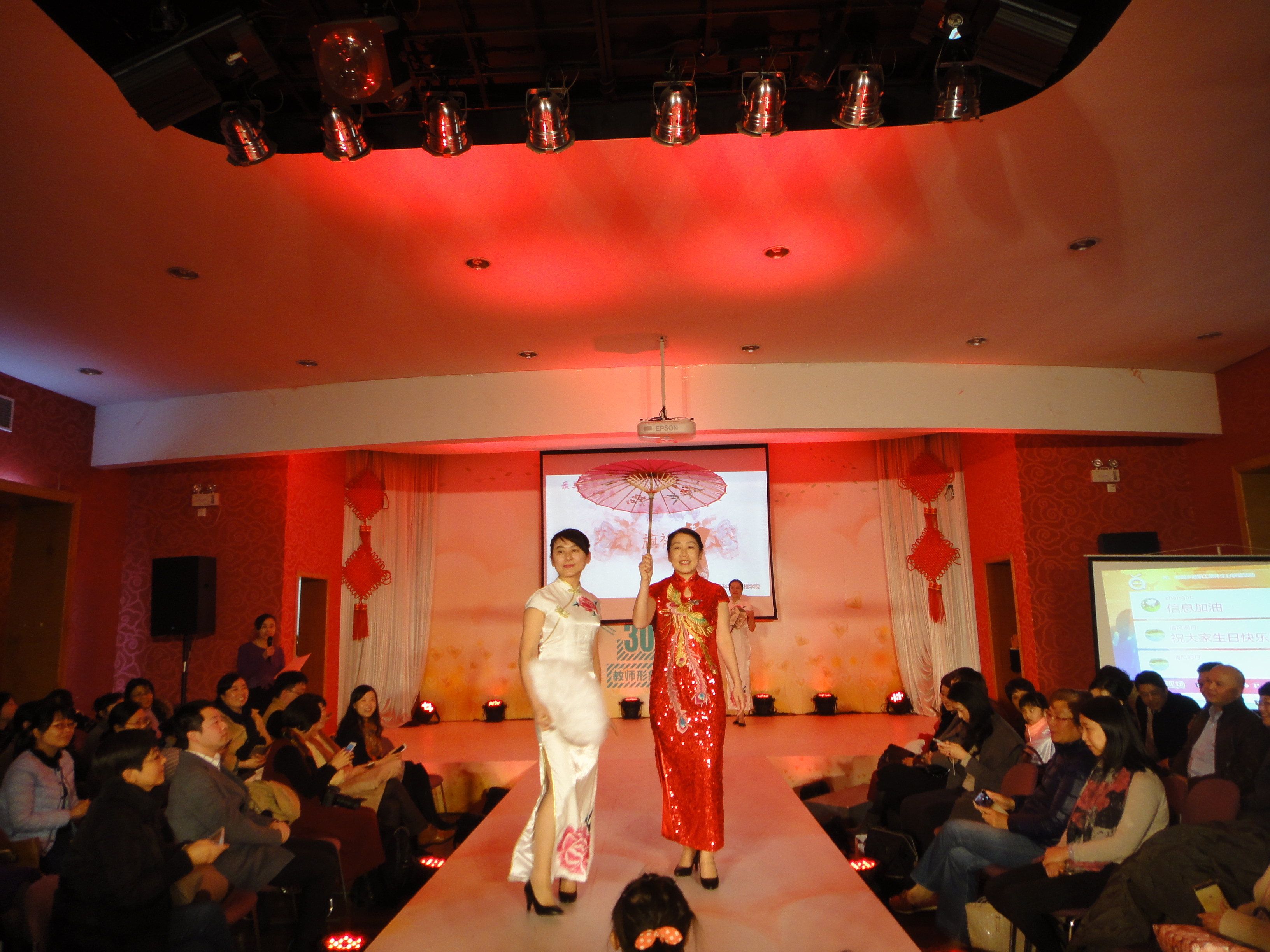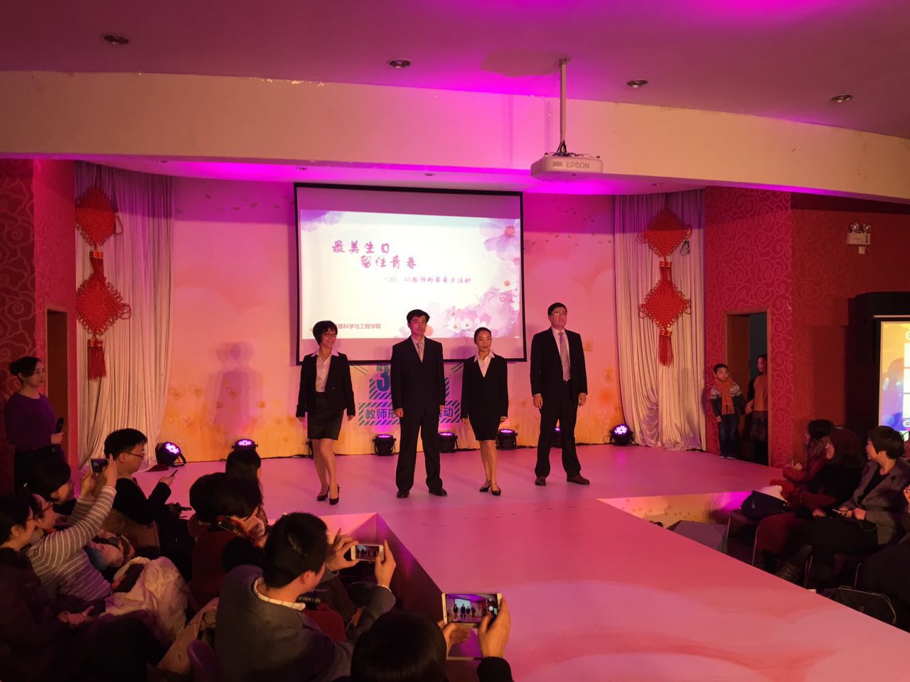 2016年12月16日下午 ,学校工会、人事处在八角亭二楼联合举办“最美生日、留住青春——30、40教师形象展示活动”。age动漫 参加人员有:侍洪波、杜文莉、刘志鹏、万永菁、何高奇、梁莹、杨富琴、韩宇光以及30、40教师钟伟民、刘济、徐震浩、王蓓,、张见、蒋翠玲、冷春霞、常虹、朱远明、李进龙、张海腾、叶琪、付歌等20多名教师参加。其中,由院长杜文莉、副书记刘志鹏、副院长万永菁等13名教师组成的展示队代表学院进行了精彩的T台形象展示演出,先后展示了职业装、亲子装、旗袍装、运动装,伴着优美的音乐,age动漫 代表队大气、优雅、自信的风采赢得台下一阵阵热烈的掌声,最终在全校11支参演队伍中拔得头筹,荣获“最佳展演奖”。