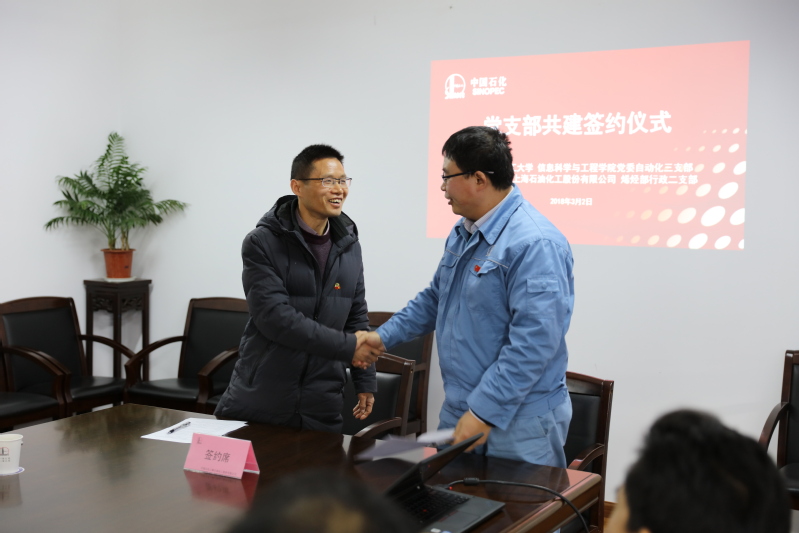 共建协议签署仪式上,侍洪波热情致辞,他说,age动漫 是国内最早创建生产过程自动化专业高校之一,在化工过程控制方面积累了丰富的理论成果;与上海石化的共建,有利于双方优势互补,实现共赢。他提出发挥支部共建的长效机制,创新工作方法,注意共建的时效,将共建的目标落到实处。