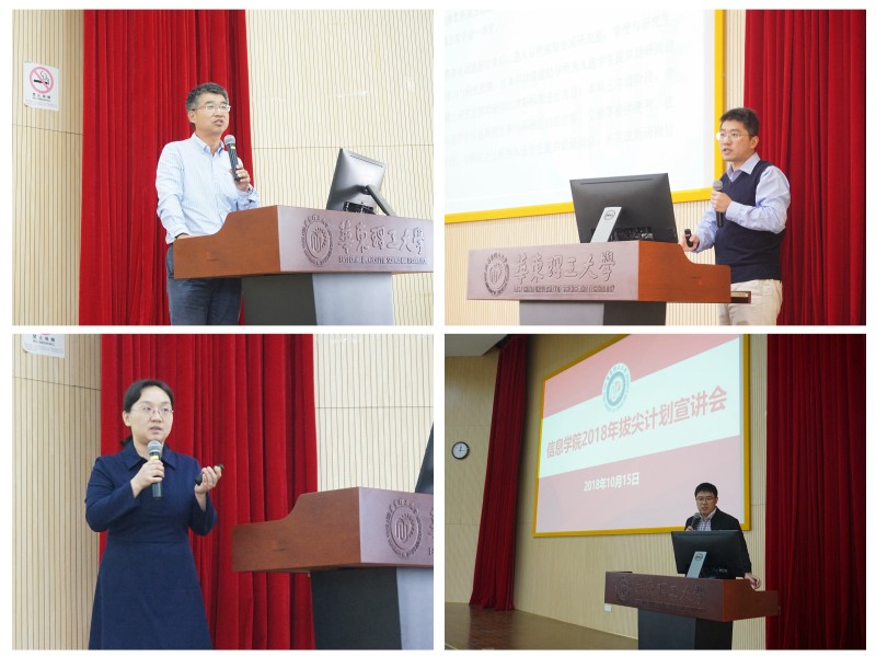 2018年10月15日,age动漫 在奉贤校区A200教室举行了首期“拔尖创新人才”培养计划宣讲会。院党委书记侍洪波、副书记刘志鹏、副院长万永菁、王喆出席了此次宣讲,2017级200余名本科生和年级辅导员参加了此次宣讲会。会议由刘志鹏主持。