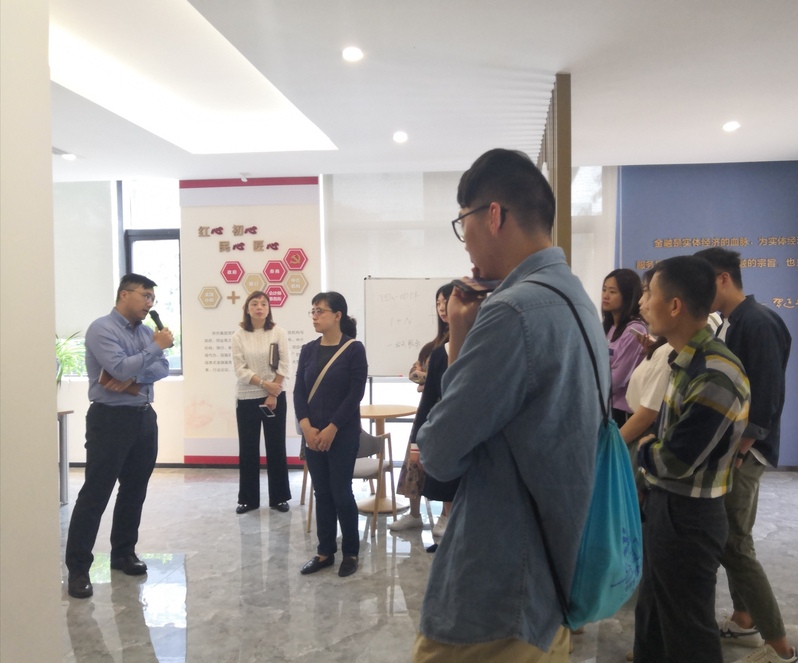交流参观过程中,金融小镇的相关工作人员向师生们展示了金融小镇党群服务中心的基础设施建设情况,并且详细介绍了2019年度的党建工作安排。交流结束后,师生党员们分别在苏州高新区金融小镇的党群服务中心会议室以及服务中心外草坪处合影留念。