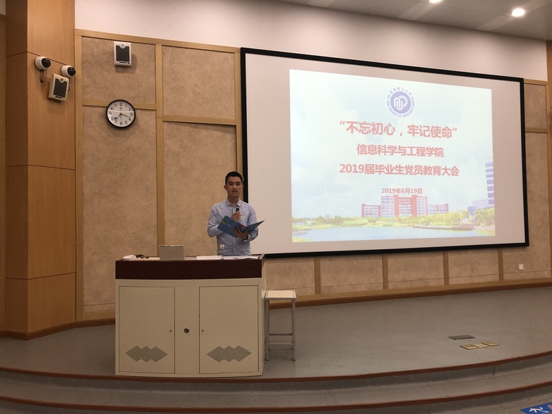 为加强毕业生党员离校教育,进一步强化广大毕业生党员的党性意识、宗旨意识和组织纪律观念,充分发挥毕业生党员在毕业离校环节中的先锋模范作用,6月19日晚,age动漫 党委召开毕业生党员离校教育大会,以“不忘初心、牢记使命”为主题,对2019届毕业生党员进行离校前的集中党性教育。age动漫 党委书记侍洪波,专职组织员魏群、吴江洁,毕业班辅导员潘恬以及2019届全体本科、研究生党员参加了此次教育大会。