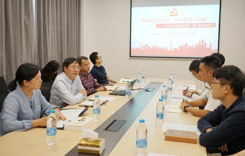 随后,自动化系研究生第一党支部书记罗粤结合自己的求学和社会实践经历就教育扶贫发表了自己的观点,他认为扶贫必扶智,激发脱贫的内生动力是实现可持续扶贫的关键。其他党员代表也结合理论与生活实际进行思考,认为必须始终把人民利益摆在至高无上的地位,更多更公平惠及全体人民,党和政府应践行“以百姓心为心”的理念,聚焦群众最关心最紧迫的利益问题,集中力量解决事关人们生存发展的“头等大事”和影响百姓日常生活的“关键小事”,把一个个民生痛点变成撬动社会进步的支点,让改革发展成果朝着实现全体人民共同富裕不断迈进。他们还表示,作为青年学生应该结合国家的需要和社会的发展来选择自己的研究方向,既要瞄准科技前沿,紧抓发展趋势,又要坐得了冷板凳,守得住科研初心,坚定做学问的信心和勇气。