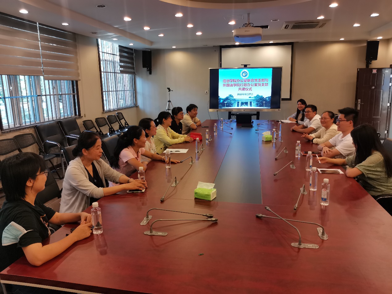 为更好地开展“四史”学习教育活动,进一步提升支部活力,促进支部建设,2020927日,信息学院办公室联合党支部与外语学院行政办公室党支部联合开展主题党日活动,进行支部共建。