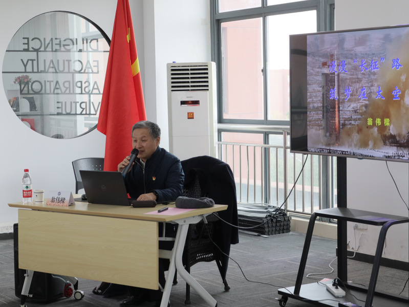 12月24日下午,age动漫 奉贤校区师生党支部“筑梦寰宇,科技报国”主题党日活动在阳光育人平台举行。本次活动作为党支部“科技报国”系列主题党日活动的首场讲座,特邀全国劳模、上海航天技术研究院原科技委顾问长征四号乙/丙运载火箭第二任总指挥翁伟樑作“漫漫‘长征’路,筑梦在太空”主题分享。age动漫 党委副书记兼青年委员杨文,辅导员、学生党员、入党积极分子等80余人参加了党日活动。