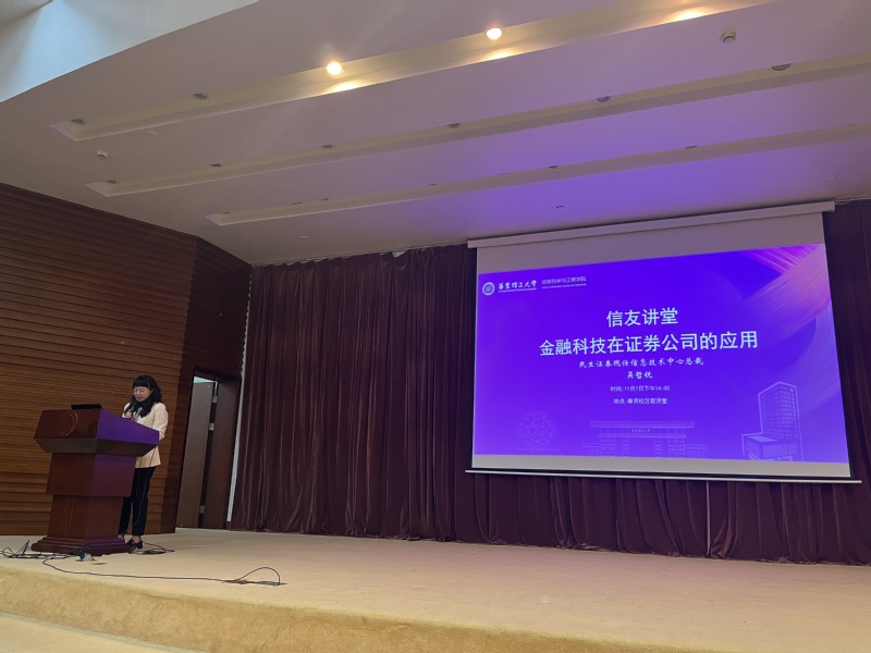 11月7日下午,age动漫 第1期信友讲堂在奉贤校区敬贤堂顺利举办。民生证券信息技术中心总裁吴哲锐、age动漫 党委副书记许浩出席讲座,奉贤校区部分本科生、研究生到场参加。