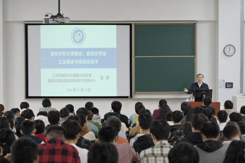 11月12日晚,中国工程院院士钱锋教授为age动漫 2024级电子信息大类新生讲授《信息学科大类概论》第一课——自动化专业概论。这是自2012年以来,钱锋院士连续第13年为新生亲授自动化专业概论课程。